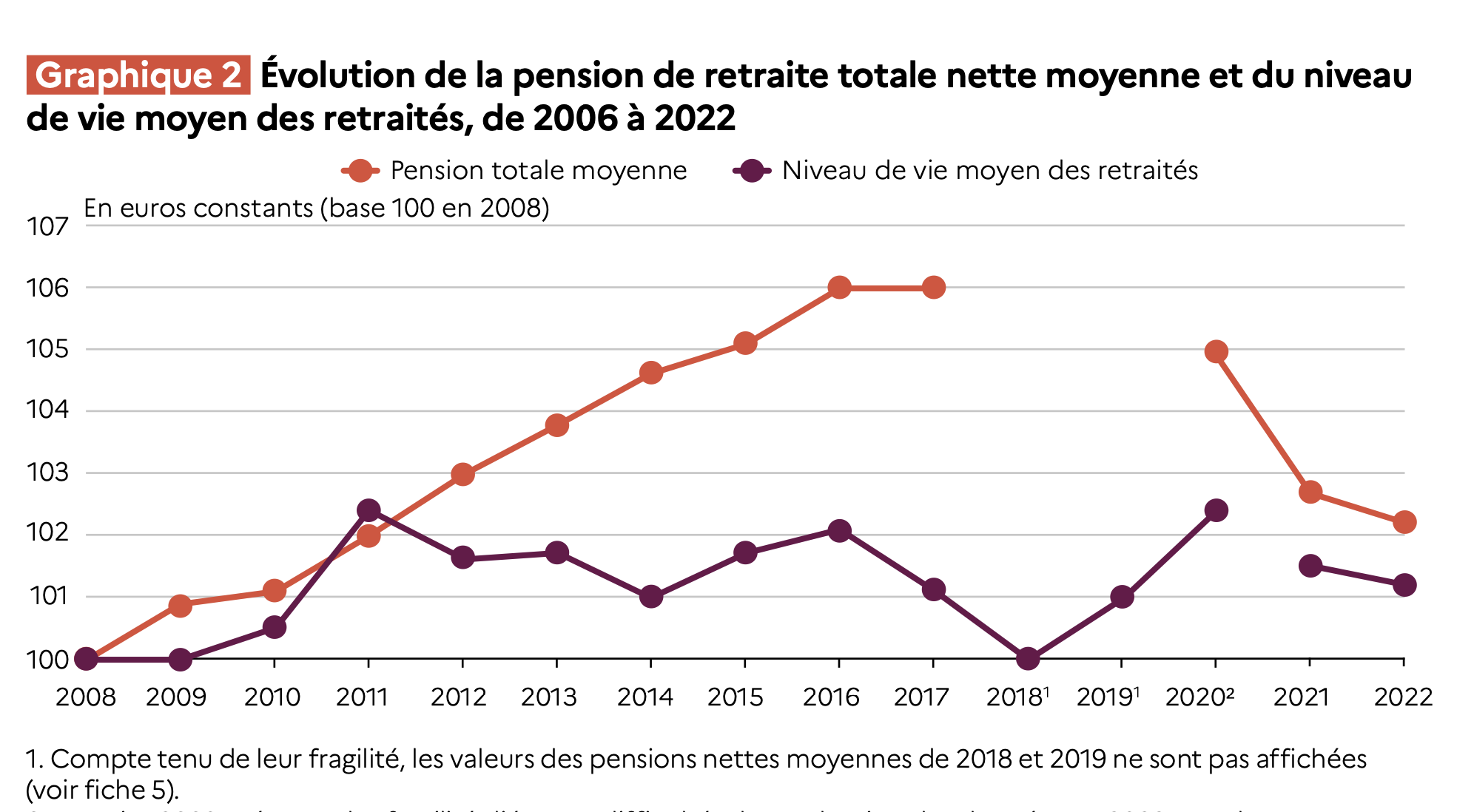 Ce dernier rapport montre en outre que le ratio entre pension de retraite totale nette moyenne et niveau de vie des retraités diminue. Pour conclure à une meilleure efficience du système, il faudrait pouvoir mesurer si certains retraités ne sont pas contraints de liquider leur patrimoine pour compléter leurs revenus, une dynamique que ces statistiques de flux ne capturent pas.